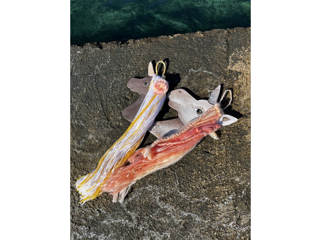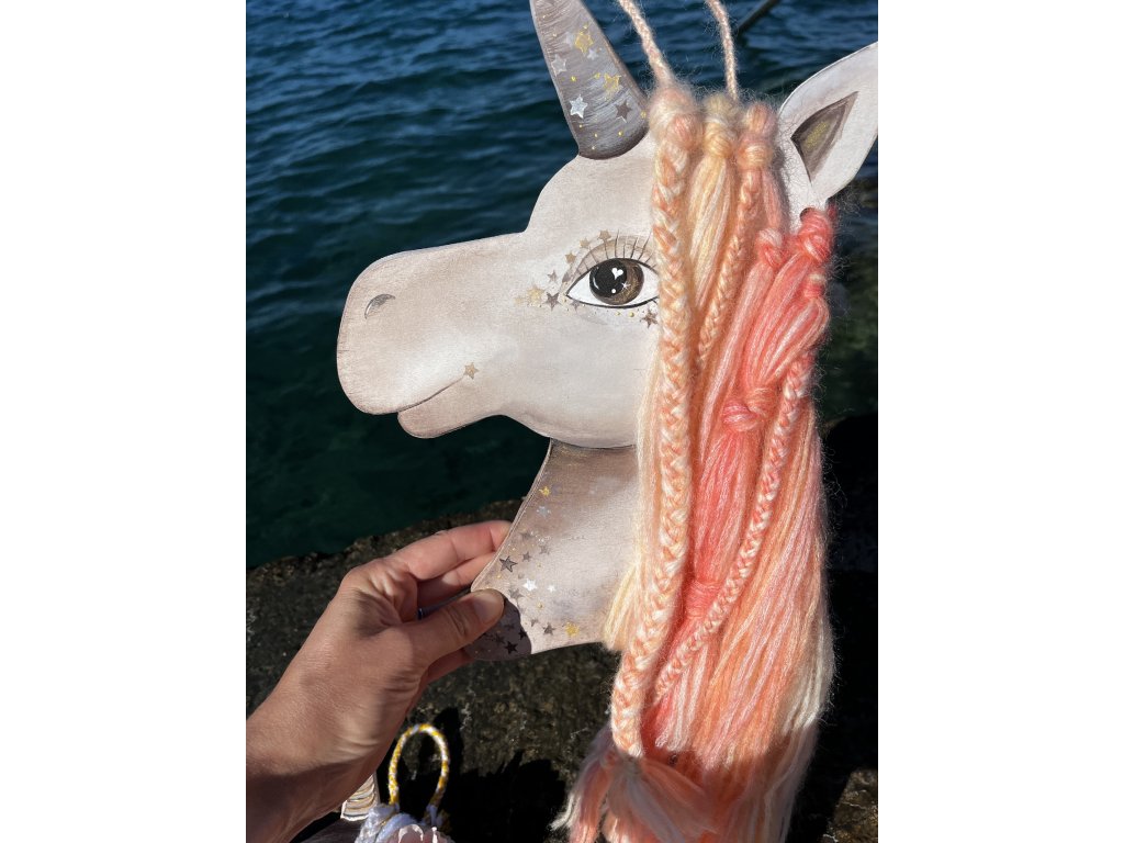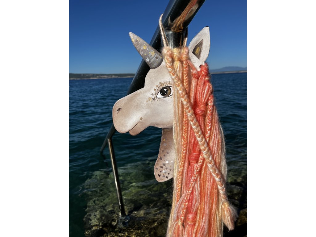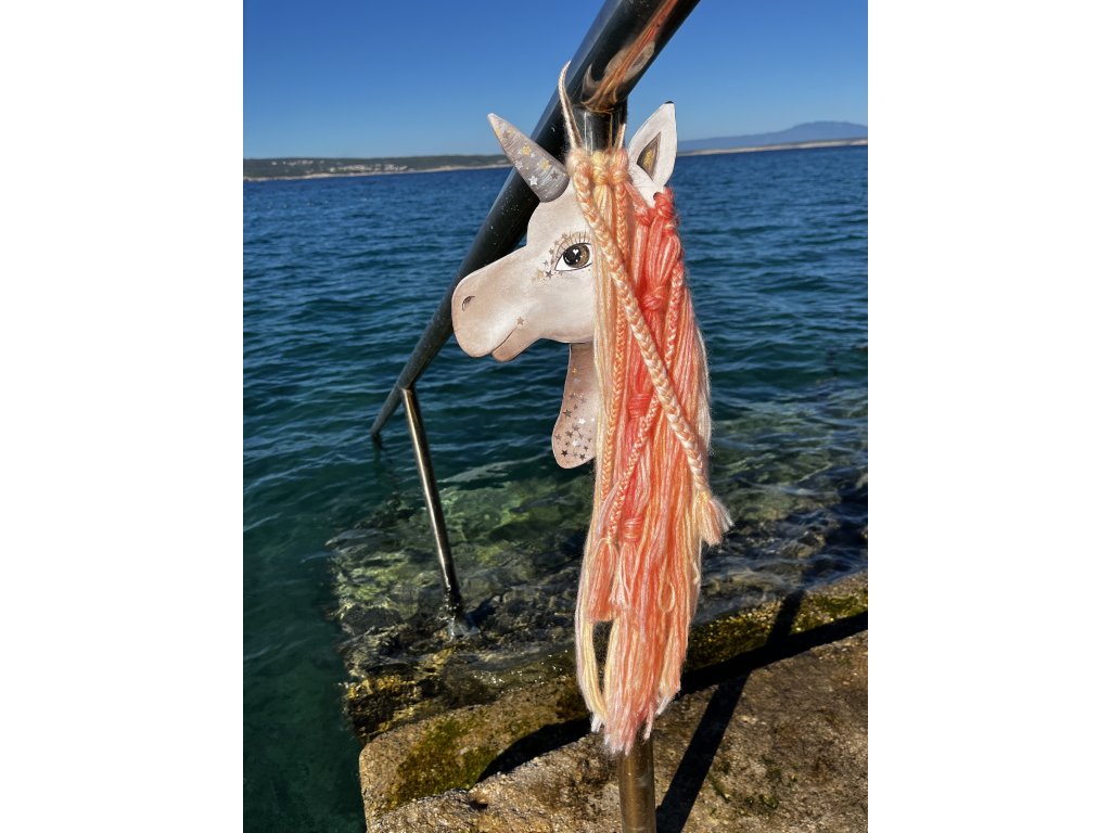 Jednorožec velký s meruňkovou hřívou. Slouží jako šikovní pomocník pro uspořádání sponek, gumiček a čelenek.